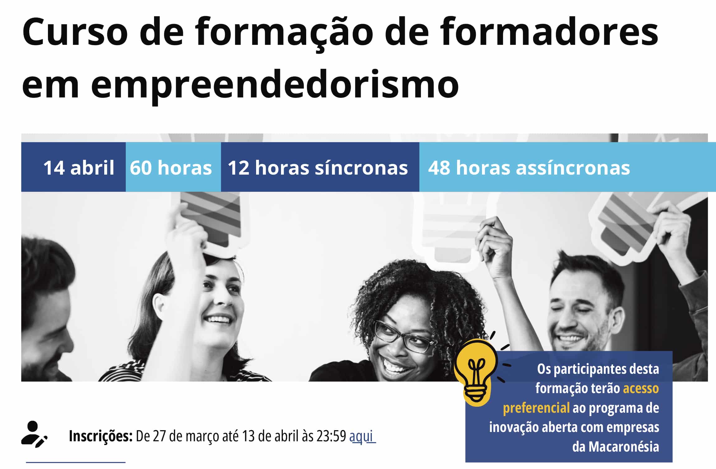 Curso de Formação de Formadores em Empreendedorismo - 14 de abril a 26 de maio